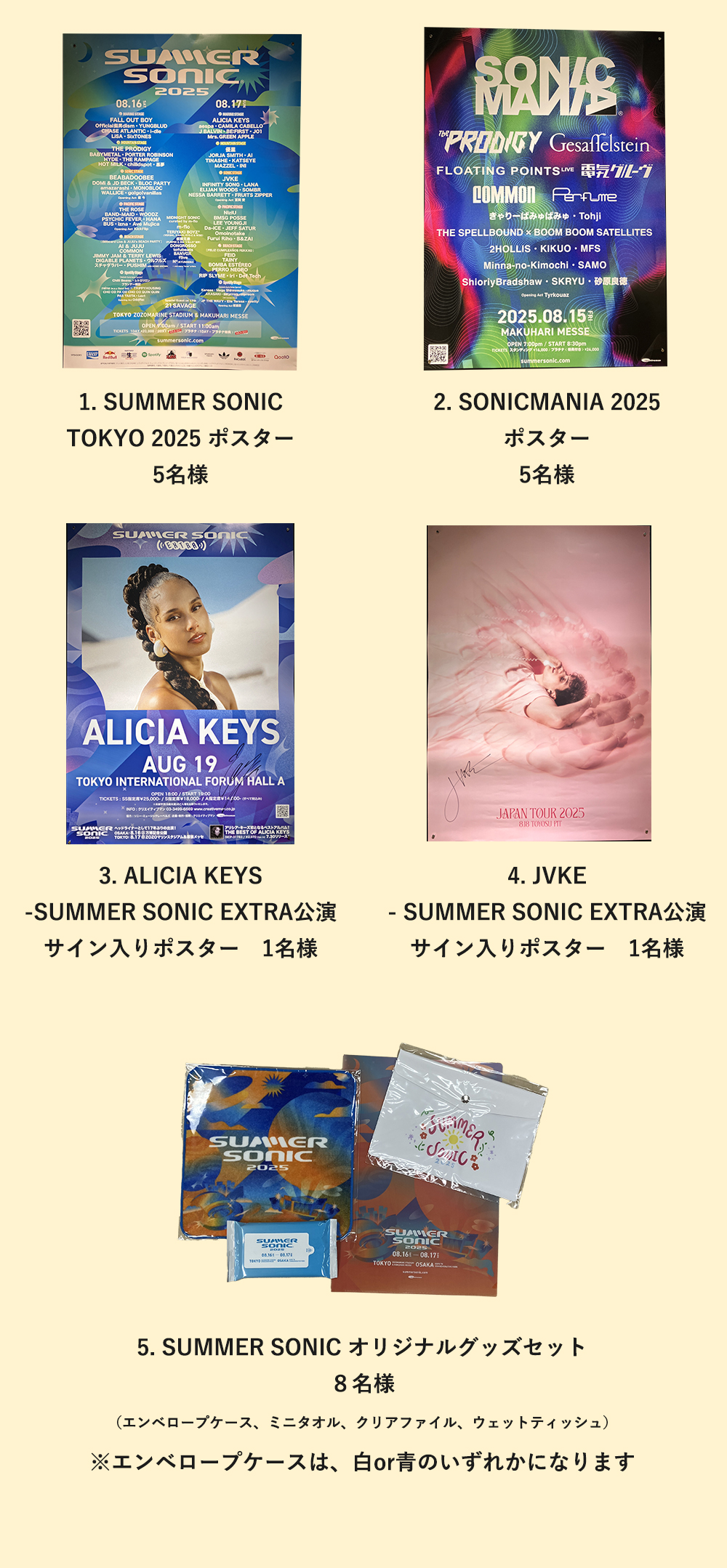 | 4 | JVKE - SUMMER SONIC EXTRA公演 サイン入りポスター 1名様 |