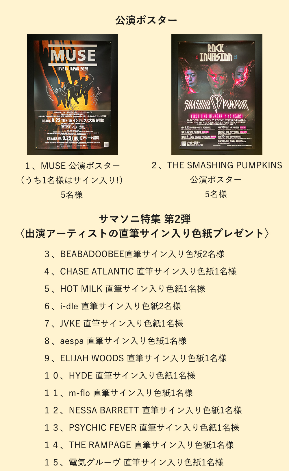 ■サマソニ特集 第2弾〈出演アーティストの直筆サイン入り色紙プレゼント〉