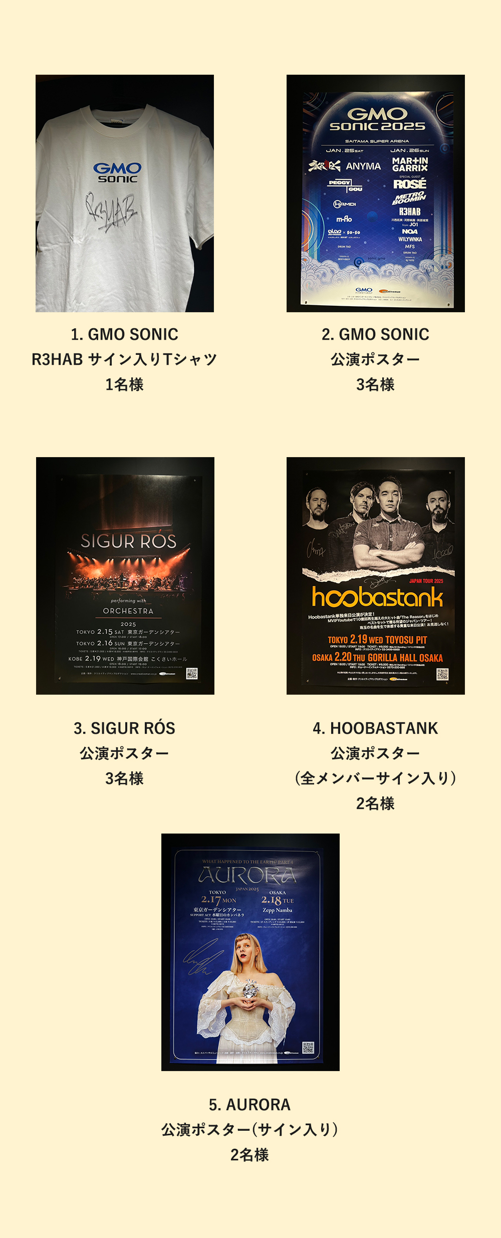 | 4 | JVKE - SUMMER SONIC EXTRA公演 サイン入りポスター 1名様 |